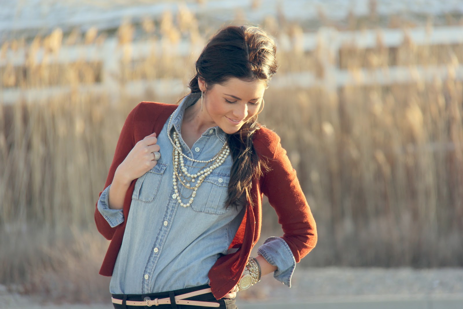 I am kind of obsessed with button up tops right now, especially chambray button ups.