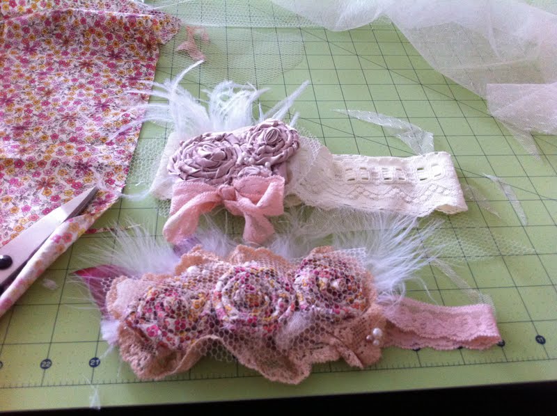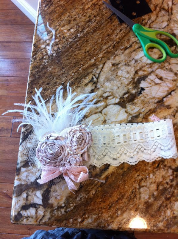 Monday: Monday morning I got a call from one of my mom's friends in her ward asking me if I would make two vintage headbands for her girls for their family photo that was on Wednesday. Of course I said yes and began to brainstorm some ideas. I started on them right away (with their family pictures on Wednesday I only had one day to create them.)