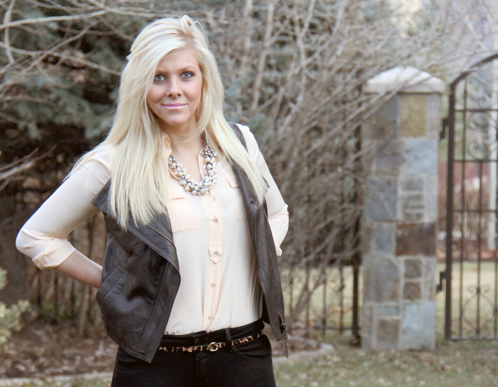 | Blouse, Belt, Necklace{linked above} / Vest: Nordstrom {old} {similar style here and here}/ Pants: Joes / Boots: Jeffery Campbell |