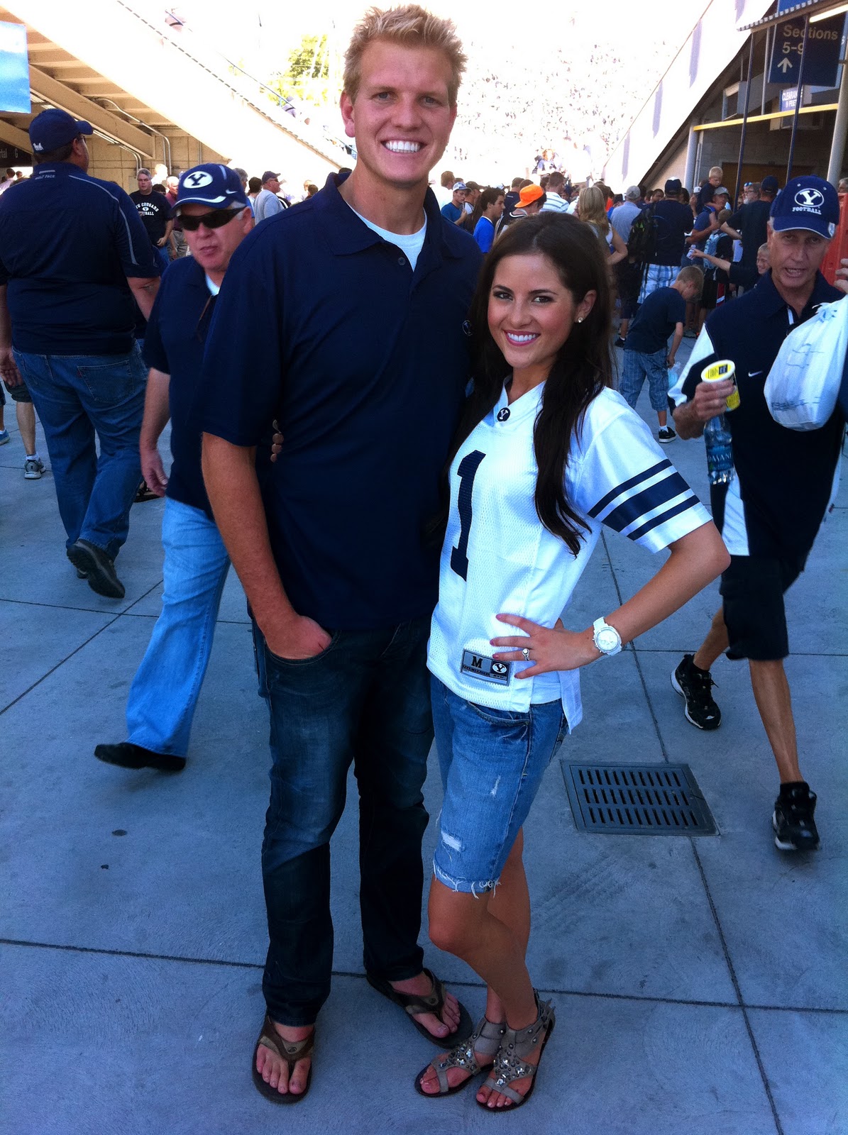We had so much fun on Saturday! We started off the day bright and early at a 5k run held for a lady in Drews parents ward who has lung cancer. It was so cool to be apart of the support group for her. Later, we passed out hot dogs at the BYU tail gate party to promote Advance Insurance, the insurance company that Drews dads owns. Then it was off to the game, sadly the cougars lost but it was still so much fun!! :)