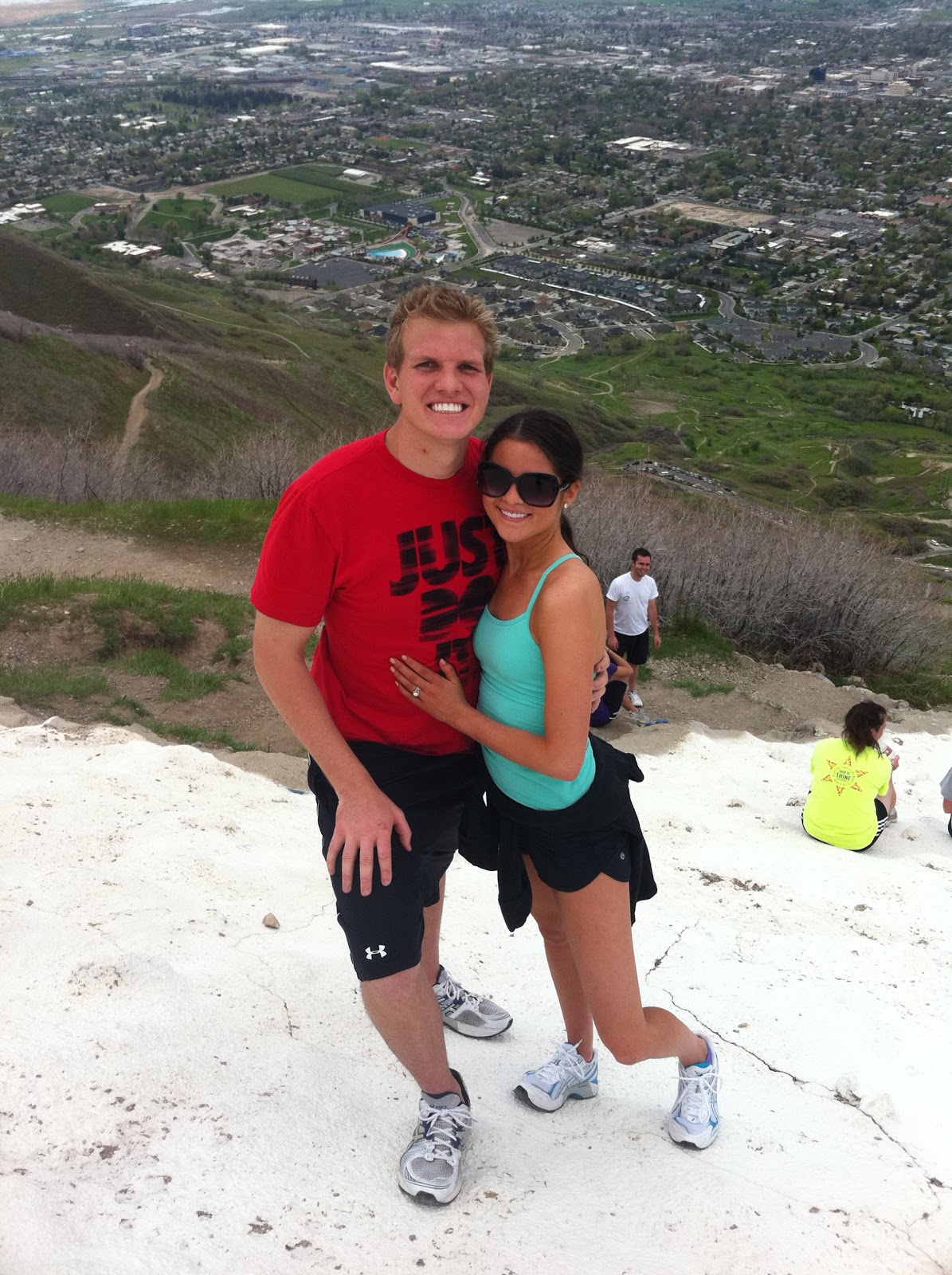 I was so ready for this weekend after a long week full of working and starting my online summer classes. On Friday night we went to Happy Sumo (our favorite) and the movie Thor, LOVED it!! Definetly a must see!! On Saturday we woke up early and enjoyed a hike to the Y. I can't believe how many people were hiking, it was a zoo. Drew and I were going up the mountain pretty fast, passing families and large groups of college students. When we reached the top a group asked Drew to take their picture... Drew was facing the mountain so he couldn't see what was behind him, well the rest of us could. Out of no where a plane came flying by the mountain, literally swipping Drew's back what looked to be a foot away but really was probably about 50 feet. The plane was so close it looked like it was going to hit Drew, scared me to death watching it all! Every single person sitting on the Y jumped including Drew with a confused look on his face because he didn't see what happened. It was the loudest thing I've ever heard and also was pretty scary. It all happened so fast I couln't even get a picture, I wish I had one so everyone could see how close the plane got to everyone, who ever that pilot is was stupid to do that. Remember how I said on the way up the mountain we were passing people, well the way down was a different story. I hurt my knee last October running in the Pink Series half mararthon and sadly it is still hurting and I discorved on Saturday that it really hurts when I walk down hill. It took us way longer to get down then up, group after group were passing us. Drew gave me a piggy back ride down most of the way but by the end it took more effort to hang on to Drew through all the bouncing of him walking down the hill that it was just easier to walk down myself. We eventually made it down and I survived. After, Drew, Walt and Tyler came over to the house to work on the yard. Drew is putting a sprinkler system in our backyard all by himself, he is seriously so handy. I can't wait until it's done so I can plant trees and flowers in our yard. For dinner we went to a new mexican restraunt called Millagros (same chef as Bajio) it's one of mine and Drew's favorite places to eat, after we went to yogurt land then went home and watched a movie. I'm so glad I have a constant side-kick with me that I have so much fun with, what a fun weekend!